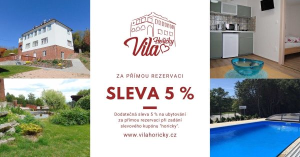 Klidné rodinné ubytování ve vile Hořičky je zasazené do malebné přírody v Podkrkonoší. Příjemná lokalita nabízí ničím nerušený pobyt a zároveň skvělou dostupnost okolních měst. Půvabný kraj v bezprostřední blízkosti Babiččina údolí vybízí k výletům, prodlouženým víkendům či trávení letní a zimní dovolené.